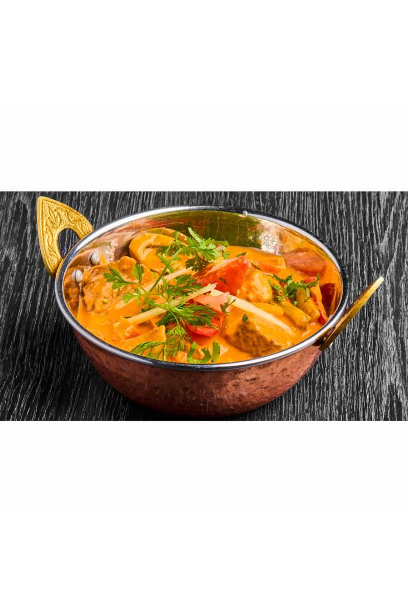 Grillet lamb med cashewnøtter, pepper, grønn chili, løk, og hvitløks- og ingefærpure